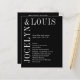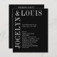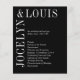 Det moderna bröllopsprogrammet har en minimalistisk svart design med namn i ett stort teckensnitt längs den lämnat sidan och överst. Det här är enkelt nog för ett formellt bröllop, men det är ett djärvt påstående.