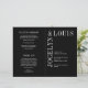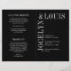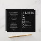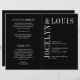 Modern vikt bröllopsprogram (som skrivs ut på papper och levereras uppfällt) med minsta möjliga svarta design med namn i ett stort teckensnitt längs den lämnat sidan och överst. Det här är enkelt nog för ett formellt bröllop, men det är ett djärvt påstående.