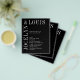 Modern bröllopsprogram-flygare (som är tryckt på tunn skrivare papper) med minsta möjliga svarta utformning med namn i ett stort teckensnitt längs den lämnat sidan och överst. Det här är enkelt nog för ett formellt bröllop, men det är ett djärvt påstående.