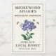 En söt liten 2 x 3-tums honungsetikett med realistiska bin och vilda blommor. Dashat gräns i lavender Blue färg lägger till en gammaldags beröring.