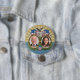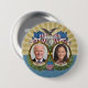 Knappdesign i vintage kampanj med foton och guld och blå accenter. Den invecklade konstruktionen omfattar en örn och ett amerikanskt flaggor och andra detaljer.