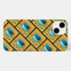 Denna pulserande kaffedesign visar ett tvåtonsteal mugg mot en slående bakgrund av guld och orange, accentuerad av en fet svart och röd diamant gräns. . Qzik Art