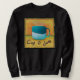 Denna pulserande kaffedesign visar ett tvåtonsteal mugg mot en slående bakgrund av guld och orange, accentuerad av en fet svart och röd diamant gräns. . Qzik Art