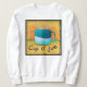Denna pulserande kaffedesign visar ett tvåtonsteal mugg mot en slående bakgrund av guld och orange, accentuerad av en fet svart och röd diamant gräns. . Qzik Art