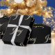 Sehr schönes edles personalisiertes Geschenkpapier im whitegold Lettering Look auf schwarz für Joey.