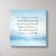 Denna design har en lugnande blå akvarellbakgrund som frammanar en känsla av lugn och frid. Mjuka övergångar blandar nyanser av blått, som påminner om en lugn himmel eller mjuka vågor. I mitten är texten i Johannes 3:16 vackert återgiven i elegant skrivstil, vilket förmedlar djupet i budskapet: ”Ty för så älskade Gud världen att han gav sin ende Son”. Den flytande akvarellstrukturen förstärker versens känslomässiga resonans och inbjuder till reflektion och meditation. Detta konstverk fungerar som en lugn påminnelse om kärlek och hopp, perfekt för alla utrymmen som vill inspirera och lyfta.