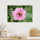 Ett foto av en rosa Zinnia, med dubbla rosa bläckblomma med gult stjärnor.