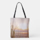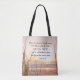Den inspirerande skriften till väskan skildrar ett naturfoto med regn på stranden och ett vackert havsolnedgång. Den innehåller en del av Bible Verse John 16:13, "När TRUTH-SPIRIT kommer, kommer HE ATT RIKTA DIG TILL ALL TRUTH ... och han kommer att förklara för dig vilket sak som är till kom."