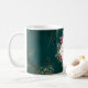 Idén att citera julkaffet mugg ger en vacker vattenfärgdesign med mörk grönt bakgrund, dekorativt lökar, blommor, röda bär och guld stänk. Den innehåller en del av Bible Verse John 3:16: "För Gud så älskad världen att han gav sin enda syndade son."
