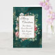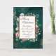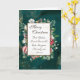 Julens inspirationstecken, hälsningskort, visar en vacker vattenfärgdesign med mörk grönt bakgrund, dekorativt lökar, blommor, röda bär och guld stänk. Bible Verse John 3:16, "För Gud så älskad världen att han gav sin enda syndade son." *