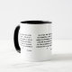Mugg har bibelskriptet John 8:44 KJV i ett fet utskrivet teckensnitt med svart brev och citat. Behållaren och fälgen är glaserade i motsvarande färg i 11 eller 15 uns stora mikrovågsugn och säker keramikkonstruktion av diskmaskiner.