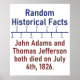 Historien är fascinerande. Visa fascination med detta historiematade faktum: John Adams och Thomas Jefferson dog båda den 4 juli, 1826. Underbar för trivia och fläkt i historieböckerna.