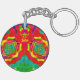 En gult, röd, grönt och blå, abstrakt frakttal ~ cirkulär akryl nyckelring. Plocka ut ur folkmassan. Lätt att hitta.