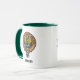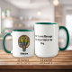 Johnston klanens vapenmärke omgivet av en rem och spänne över tartan bakgrund. Anpassad text på båda sidor.