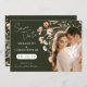 Lägg märke till din stora dag med det här romantiska Spara datumkortet med vildblommor, elegant modern typsnitt och plats för ditt favoritfoto på förlovningen. Den djupa oliv grönt bakgrunden tillför en sofistikerad beröring, medan de visuella blommigtarna för in en mjuk, trädgårdsvib - perfekt för rustika, utomhus eller fallbröllop... Elegant Grönt Blommigtar Bröllop Photo Save the Date med foto och mörk grönt bakgrund. Söt elegant rosa och beige vattenfärgsblommor, botaniska vilder och ett pars foto. Dessa blommigtar för vattenfärg som ställs in mot en mörk grönt bakgrund är perfekt för bröllop av vismisk vilda blommor.
