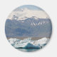 Magnet med ett foto av isberg i Jokulsarlon och berg med snö, Island.