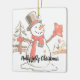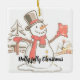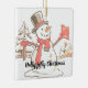 This little snowman wants everyone to have a jolly Christmas, the ceramic ornament will will look great on any tree.