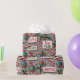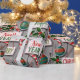 Holiday Signage: Small, distressed white signs with black lettering feature various holiday greetings such as "CHRISTMAS," "Happy," "Jolly," "New Year," and "MERRY." These signs vary in orientation and placement, adding to the dynamic feel of the pattern.