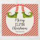 Roligt Elf ben med röda och elfenbensstrimmade trikåer och gröntar med jingle klockor, och din helgdag hälsning med chic, anpassa dessa mousserande vin-flaska-märken till på julfesten eller till ge som gåvor eller party favors, företagsgåvor, företagsgåvor, ÄNDRA ORDET "God Elfin jul" till vad som helst!