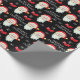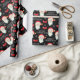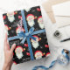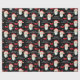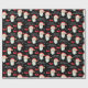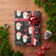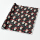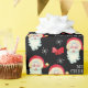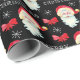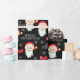 Den här julklappen som omsluter pappra innehåller en bild av Jultomten och accentueras med bokor och snöflingor på den svarta bakgrunden.