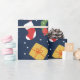 Slå ihop presenter med helgdag med vårt **Jolly Jumble Wrapping Papper**! Den här designen är full av festlig roligt och innehåller vågor, presenter, prydnadsföremål, pepparkaksgubbar, Julgranar, lager, tomthattar och polkagrisar som är spridda över en riks mörk blått bakgrund. Perfekt för att lägga till en lekfull och ren beröring i din helgdag.