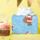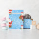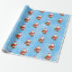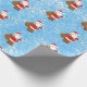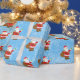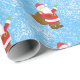 Jultomten mönster på blå snötäckesbakgrund.
