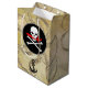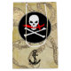 Avast ye lubbers! Ge mig timmer! Ett pirat-temat med en stinkande jollesroger med en kugglass i tänderna omgiven av bläckfisk och ett ankare på ett gammalt parchment.