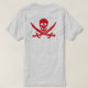 Det iconic Jolly symbolet för Roger piratflagga med korsade svärd - som är i naturlig storlek på baksidaen och upprepar på bekläda ", stoppa i fickan". I rött på någon bakgrund väljer du!