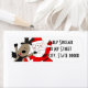 En roligt som illustrerar ett Mod tomten i ett ljust rött kostym med vit trim bredvid ett jollt renare i en mörk brun scarf.