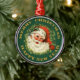 Detta prydnadsämne har en roligt porträtt i Jultomten i sitt röda och vita strumplock och ett hett vitt skägg. Han bär en gryning med ett rött bär. Porträtt är omgivet av en utandning av gräs nål på grund av grönten av skogen. Söt halvcirkel guld längst upp säger God jul och grund Gott nytt år. Det är en vacker julprydnad. *Obs! Bilden skrivs ut och innehåller inte glitter.*