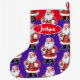 Jolly Santa anpassningsbar grabbar julstrumpor. Dubblan är på sidan. Lila och röd version.