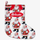 Jolly Santa anpassningsbar tjejer julstrumpor. Dubblan är på sidan. Vitt och rött Den här joviga jultomten kollar sin lista, det är ett bra jobb som din favorit är på, och du kan se till att deras namn också är framträdande på sin julklapp!