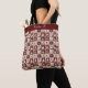 Lekande snögubbar, blommor och snöflingor på en stav och röda fyrkanter mot en brunt bakgrund skapar en söt totepåse med ett rustiskt utseende, land. Väldigt sött!