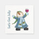 Roligt julfest cocktailblöjor, vita, med tecknad grafik av färglöst klädd snögubbe som innehåller ett glas vin. Blå text läser, Låt oss Hämta Jolly. Matchande inbjudningar till julfesten är tillgängliga.