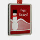 Toppen roligt och viskigt Jolly Snögubbe julpremie Square Ornament. Det här anpassadet helgdag har en härlig bakgrund och lycklig snögubbe mot backe som täcks av snö och en röd bakgrund. Den här söta snögubbe-ornamenten gör en underbar gåva eller helgdag-keepy när du anpassar den här designen med ditt eget hälsning- och/eller personlig-meddelande!