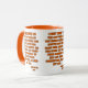 I det här tvåtonsmönstret mugg visas ett Slått teckensnitt och ett Springa med orange brev svart kontur som visar "Jonah 2:6" KJV bibelskript verst över en vit bakgrund av detta trosbaserade tema. Den här versen hänvisar till Bok i det andra kapitlet som visar 6e-verbet i detta bibelcitattema från Kung James-bibeln. Behållaren och fälgen är glaserade i motsvarande färg i 11 eller 15 uns stora mikrovågsugn och säker keramikkonstruktion av diskmaskiner.