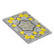 A mesmerizing kaleidoscopic design crafted from vivid yellow flowers and green stems, arranged in a symmetrical, star-like mandala. The grayscale sandy background with sparse grass enhances the vibrant floral pattern, creating a striking contrast between nature’s raw texture and geometric precision. Ideal for art lovers who appreciate the fusion of organic beauty and digital symmetry, this piece brings warmth, balance, and visual intrigue to any space.