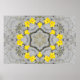 A mesmerizing kaleidoscopic design crafted from vivid yellow flowers and green stems, arranged in a symmetrical, star-like mandala. The grayscale sandy background with sparse grass enhances the vibrant floral pattern, creating a striking contrast between nature’s raw texture and geometric precision. Ideal for art lovers who appreciate the fusion of organic beauty and digital symmetry, this piece brings warmth, balance, and visual intrigue to any space.