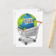 Illustration av en tecknad jord inuti shoppingvagn som symboliserar protester mot konsumtionism