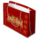 Anpassade Stor presentväska med guldpapper av två hundar och stiliserad jord mellan dem på röd bakgrund: 2018 är Hund jordår. Finns i medelstora och små storlekar. Matchar hälsningskort, inbjudan och mer.... Perfekt för kinesiska nyåret i Hund 2018 eller födelsedagen (människor födda i hund). —"Hund (狗) är en av de tolv år långa djurcyklerna i den kinesiska zodiaken som är relaterad till den kinesiska kalendern. År för Hund är associerat med Gren symbol 戌. Tecknet 狗 avser det faktiska djuret medan 戌 avser zodiakdjuret. (...) Personer som fötts inom dessa datumintervall kan sägas vara födda under"Hund år", samtidigt som de har följande grundläggande tecken: