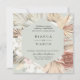 Chicens jordton vattenfärg handflatan fronds, orkidé, lilies och pampas-gräs, bröllopsinbjudan. Kortets framsida har silver-sidbakgrunden. Kortets baksida har fast rosa färg och matchande blad arrangemang. Anpassa text, teckensnitt stil, färg och storlekt.