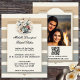 En modern inbjudan till bröllopsfesten som innehåller en elegant som är utformad i jordtoner i pastellform. En centerbukett med sukulenter, bomull och vete tillför elegans och anslutning till jorden. På baksidan finns anpassningsbarnas foto som är enkelt att anpassa QR-kodmallen (valfritt). Underbar för en chic land stil bröllop.