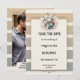 Bröllop spara datum-kort med en elegant i form av jordtoner i pastellform. En bukett av sukulenter och bomull med vete tillför jordenergi. På baksidan visas anpassningsbarnas foto med QR-kodmallen.
