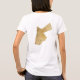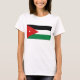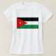 Framsidan av denna t-shirt visningar djärvt den jordanska flagga med dess distinkta vita stjärna i röd triangel bredvid svarta, vita och grönt band. Detta motsvaras bakåt av ett attraktivt karta av Jordanien.