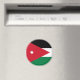 Jordaniens flagga. Jordaniens flagga, som antogs officiellt den 2 september 1920, grundar sig på den arabiska revolutionens flagga mot det ottomanska riket under Världskrig I. Flagga består av vågräts svarta, vita och grönt som är sammankopplade med ett rött kryss. Färg är det panarabiska Färgen, som representerar Abbasid (svarta band), Umayyad (vita band) och Fatimid (grönt band)-kalifater. Den röda evonen är till Hashemitiska dynastin och arabrevolten. Den sjuspetsiga stjärnan står för de sju verserna av det första survalet i Qur'an och står också för arabfolkets enighet. Vissa anser att det också hänvisar till de sju backe som Amman, huvudstaden, byggdes på.