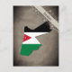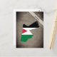 Postkarte mit einem Umriss von Jordanien, gefärbt in den Farben der Nationalflaggge.