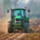 Förberedelser inför nästa skörd. Traktorns häckar (pilar) fält och vild fåglar söker efter mat i den nytillvända jorden. Watercolor England.