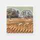 En abstrakt roligt av plöjt (plöjt) fält och träd i bakgrunden, ett typiskt landsbygdslandskap.