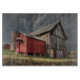 Fotot från fantastisk Getty Bilder har en mörk och dramatiskt himlar över en pulserande röd trälada i Suttons Bay i Michigan.