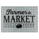 Svart stencil om grått och vit gingham med bakgrunden incheckad av "Farmer's Market - Locally Grown"